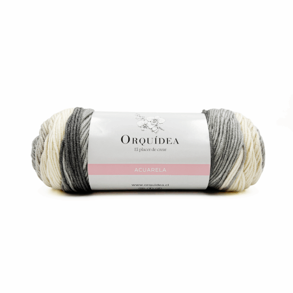Acuarela es nuestro nuevo hilado 100% acrílico anti-pilling. Cada ovillo trae 100 gramos y 200 metros, ideal para proyectos livianos y versátiles. Es un grosor DK (ligero), recomendado para palillos y crochet de 3.75 a 4.5 mm, perfecto para prendas, accesorios y tejidos para toda la familia.